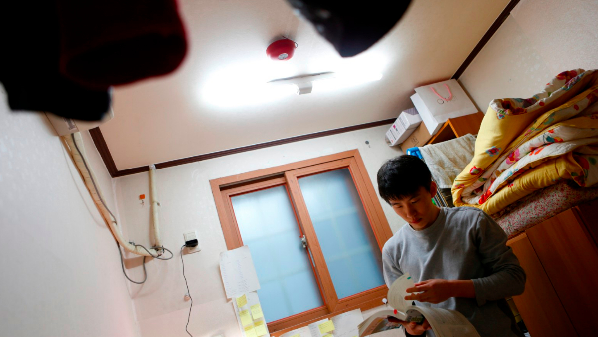 圖為居住在南韓首爾廉價租屋處「考試院」的青年。路透社資料照