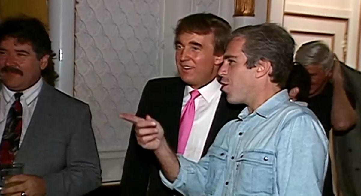 美國總統川普與富豪淫魔艾普斯坦(右)在90年代是好友,經常一起現身派對。翻攝路透社資料畫面