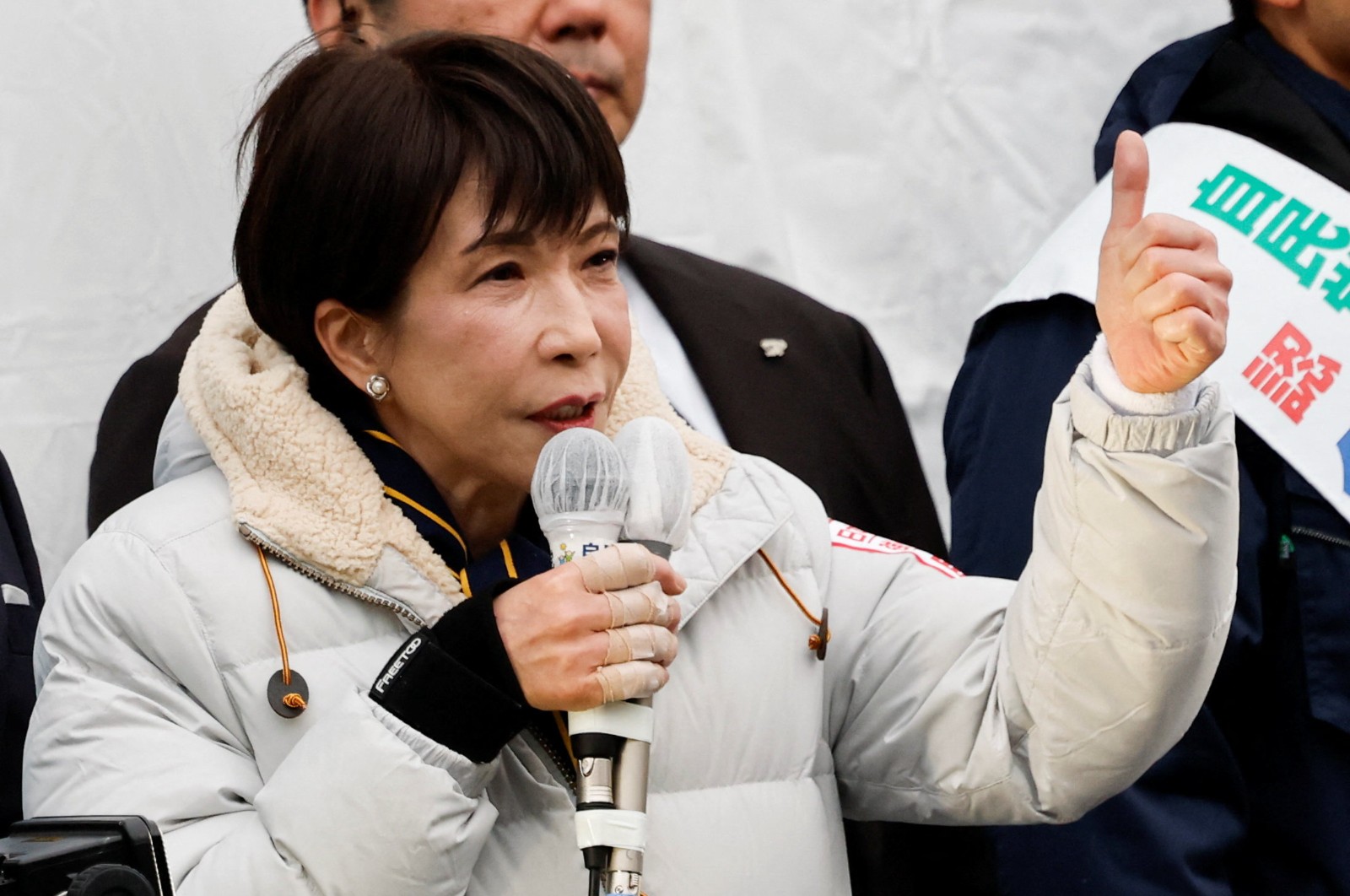 2026年2月7日,日本提前眾院大選前夕,首相高市早苗在東京街頭演說。 路透社