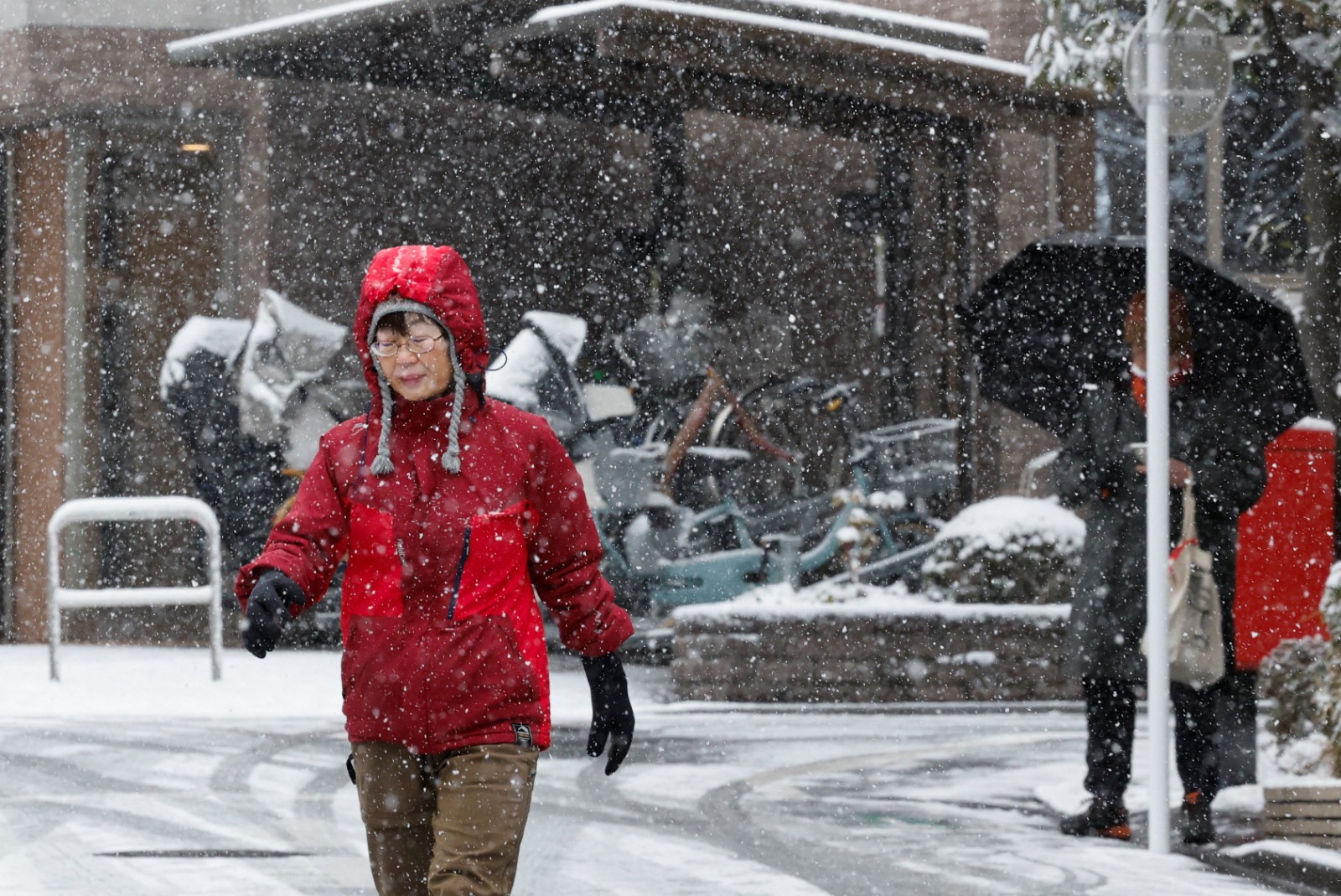2026年2月8日,日本新潟縣魚沼市,民眾冒雪去投票。路透社