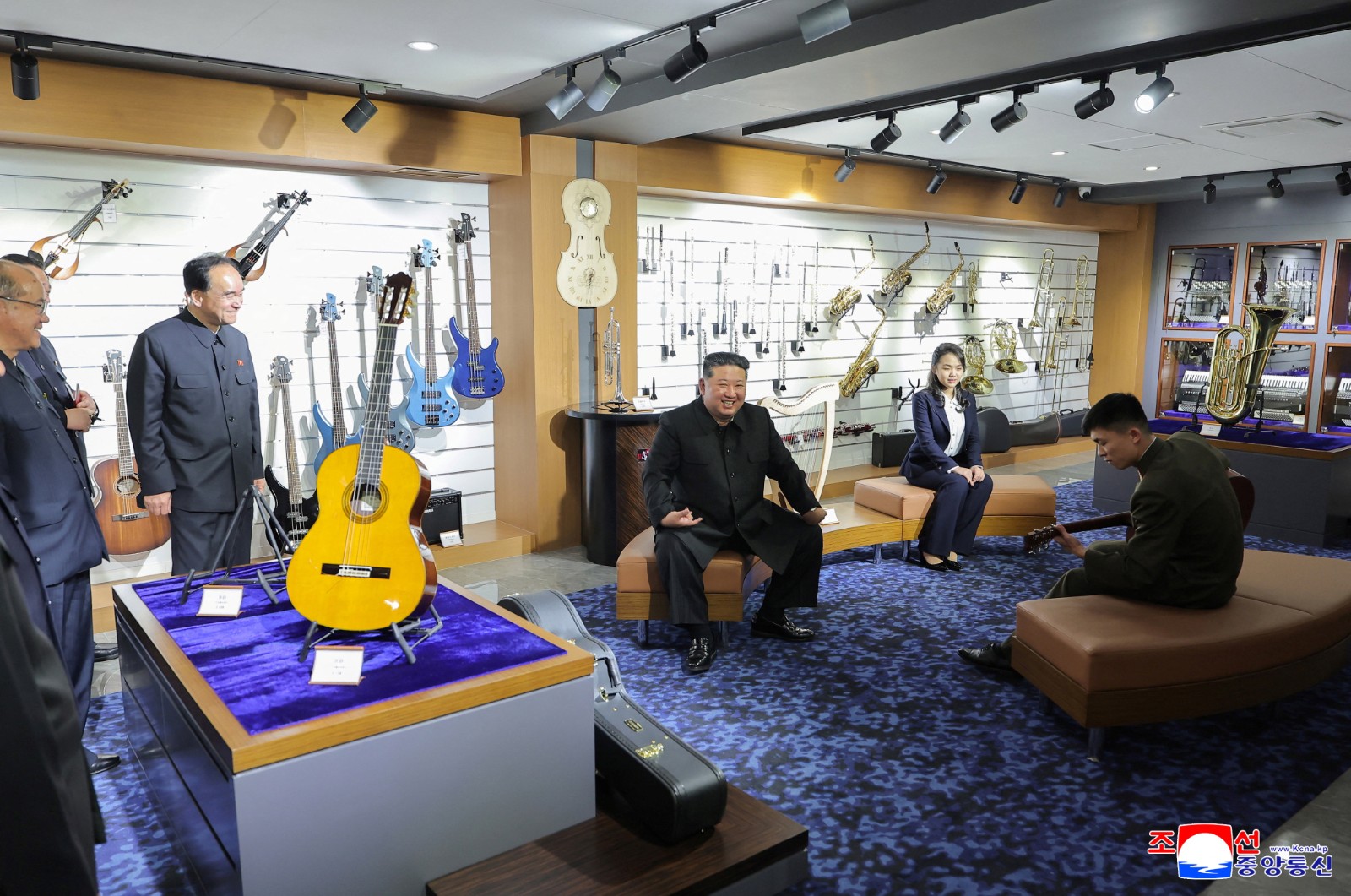 北韓領導人金正恩帶著女兒金朱愛視察寵物店、樂器行和美容院等商業設施。翻攝KCNA