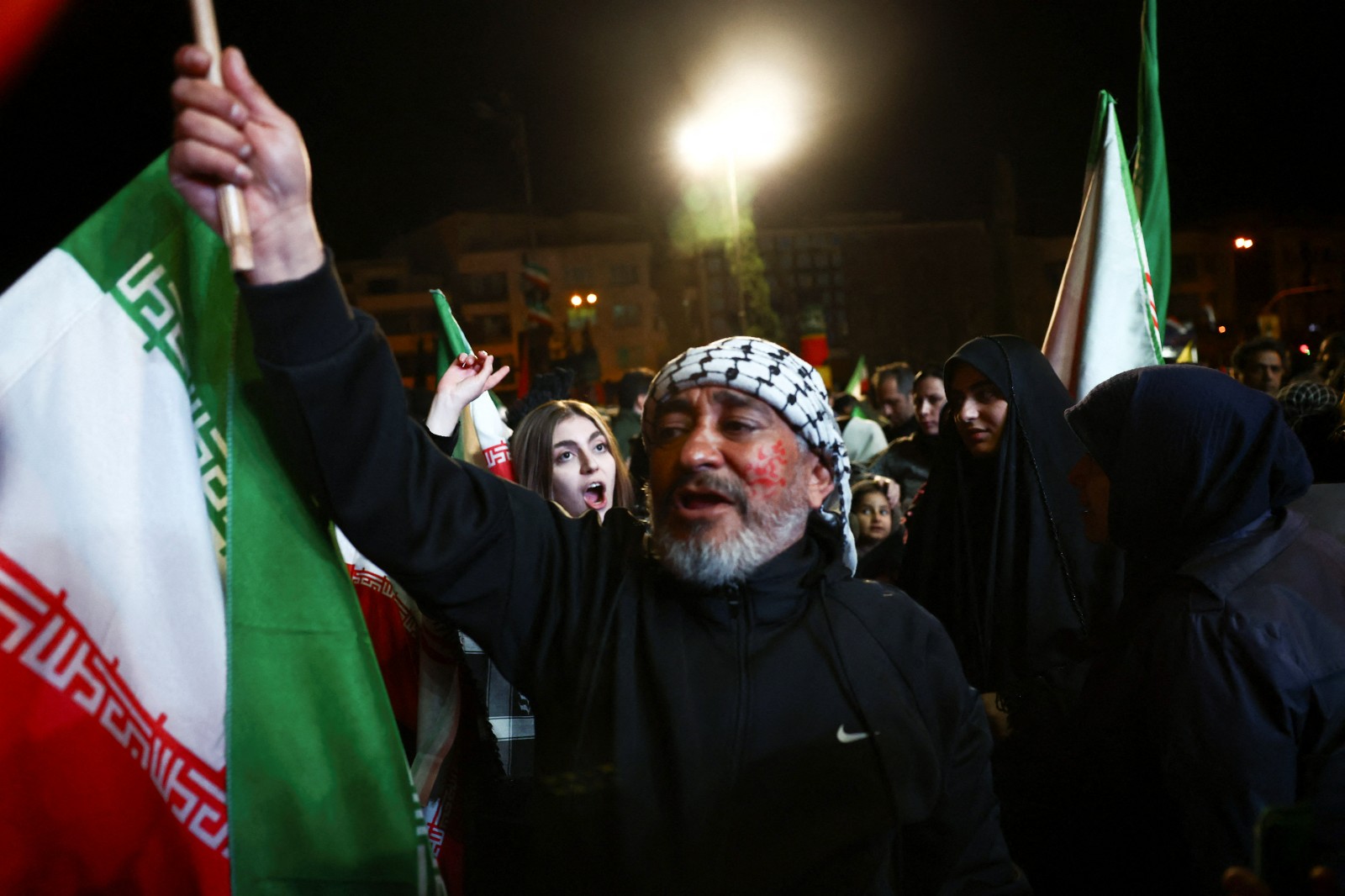 2026年4月8日,伊朗民眾在德黑蘭慶祝停火,並焚燒美國、以色列國旗。路透社