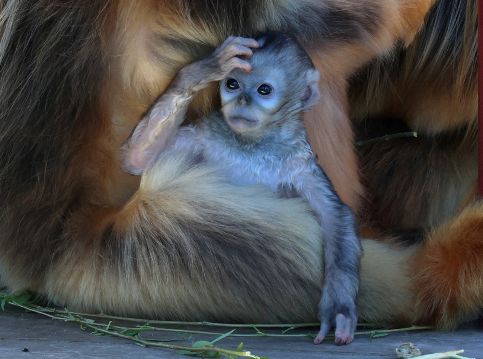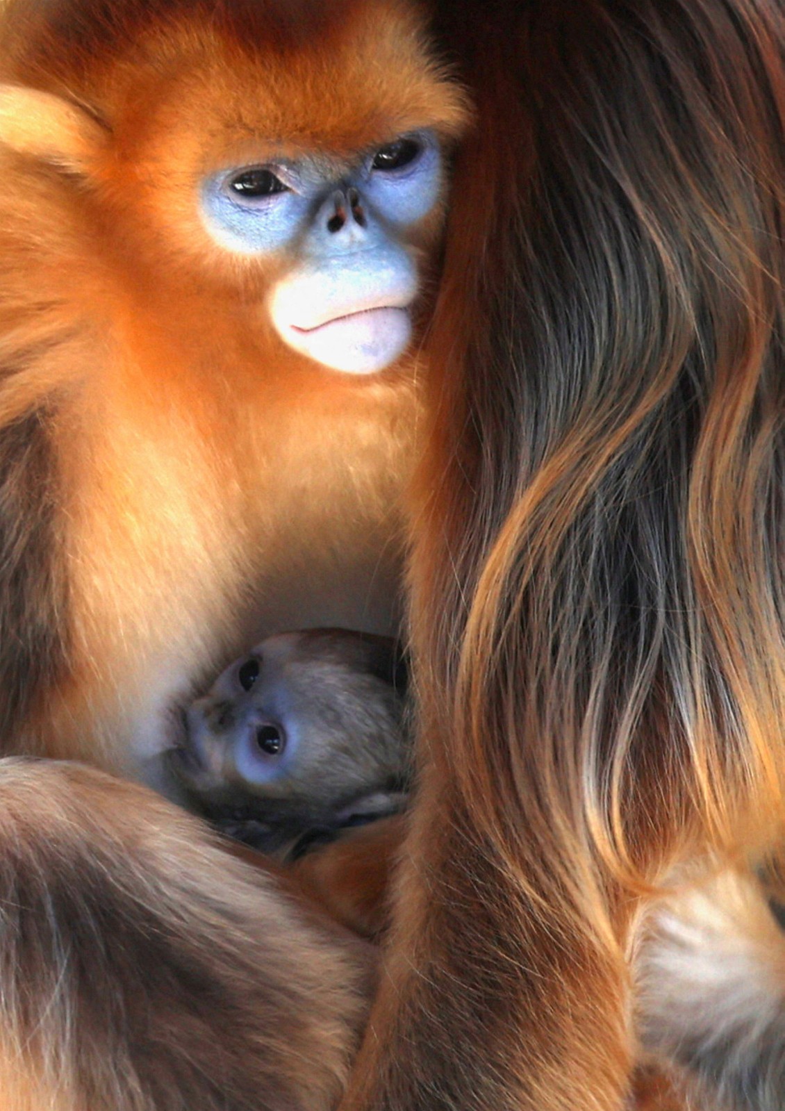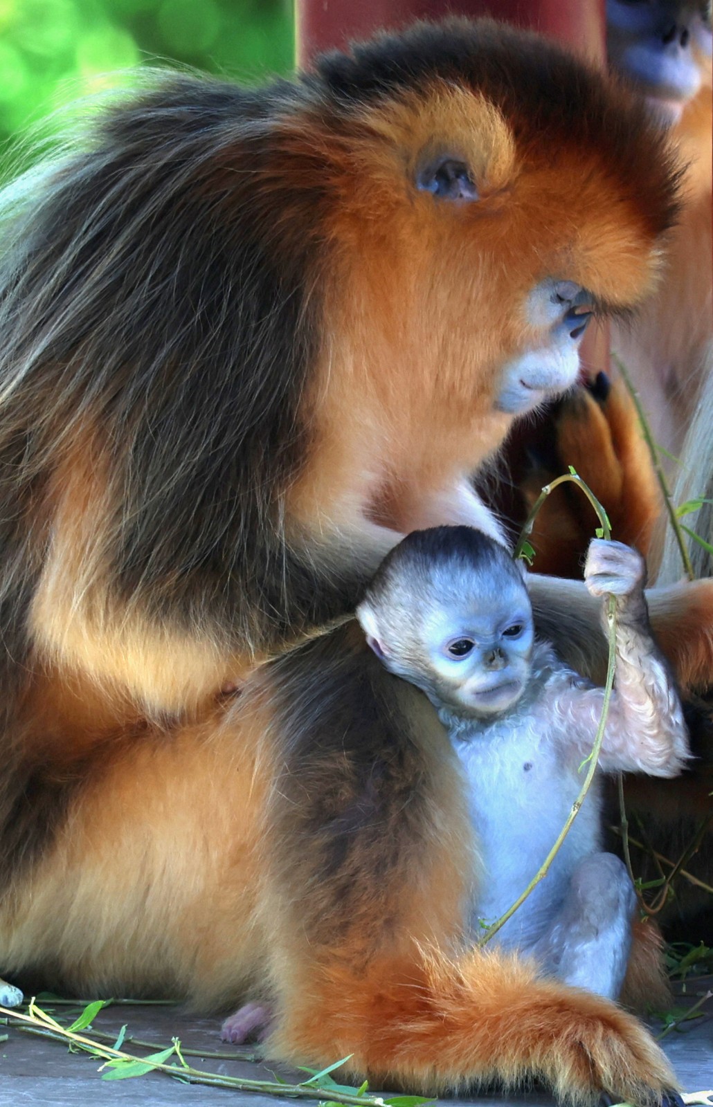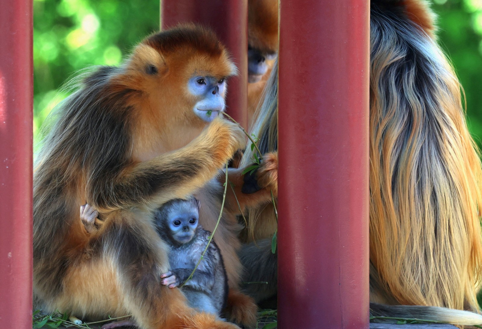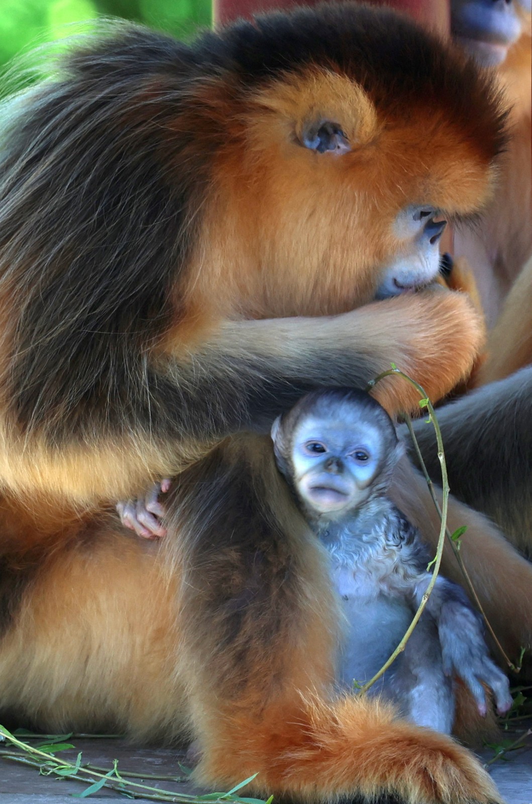金絲猴中的川金絲猴,擁有鮮豔飄逸的毛髮、獨特藍面孔,被譽為全球最美猴子。比利時天堂動物園(Pairi Daiza)本月宣布,來自中國的金絲猴媽媽「璐璐」3月中旬順利生下寶寶,目前母嬰成日黏著彼此,園方尚不知寶寶性別。