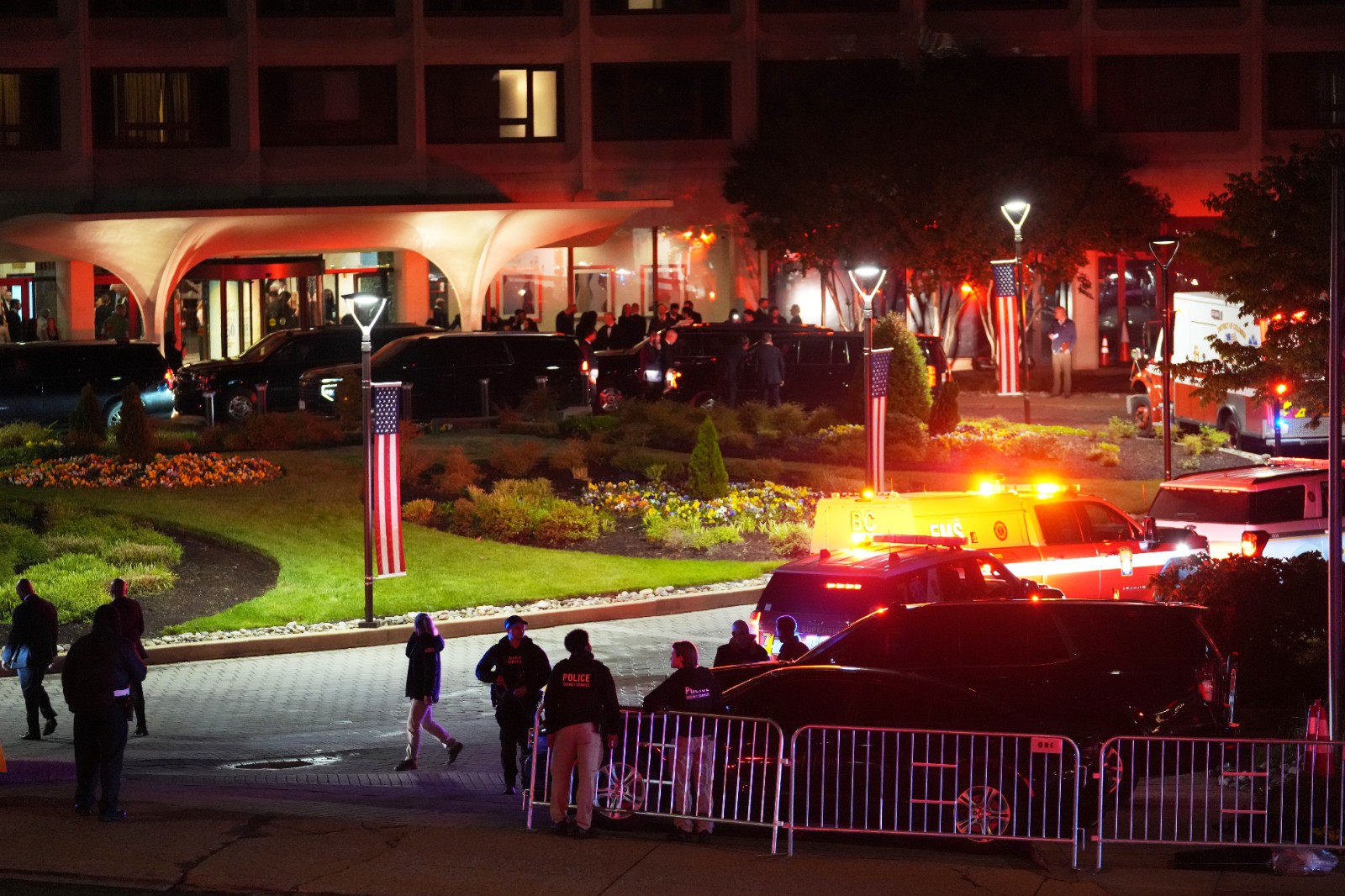 2026年4月25日,川普出席白宮記者協會晚宴期間傳出槍響,執法人員在現場執勤。美聯社