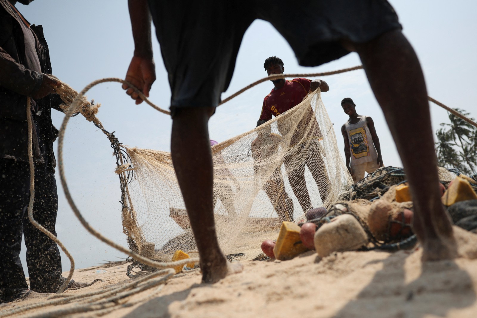 奈及利亞漁民整理漁網,準備出海;這些魚網對海龜造成莫大威脅。路透社