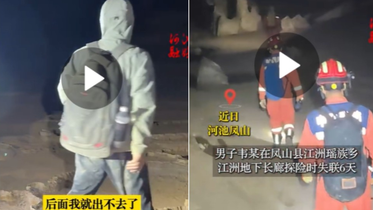 打卡美景雖重要,但更要顧及自己生命安全。中國一名37歲男子,因為拍照打卡「世界第一長洞」,因此闖入廣西河池鳳山縣江洲地下長廊,男子不慎迷路,失聯6天。男子最後被找到時,所處位置毫無光源、一片漆黑,信號也無法接通,男子表示他靠喝地下水撐過6天,讓人驚嘆實在命大。