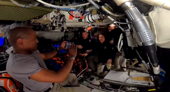 阿提米絲2號任務的太空人使用iPhone 17 Pro Max拍照。翻攝NASA直播、X