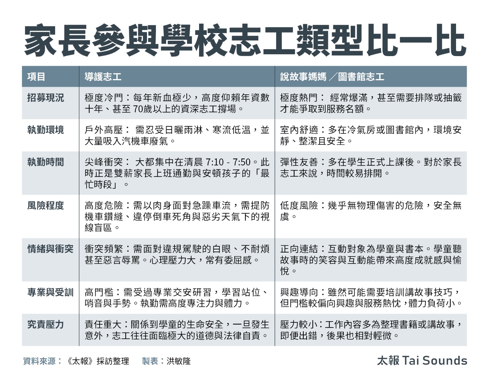 「現代年輕家長工作太忙碌了,這是很現實的問題。」楊琇媛感嘆。儘管台北市教育局推出了「導護志工集點卡」,站滿10次可以兌換兒童新樂園或動物園的免費門票,這對吸引家長參與起到了一定的微效,但要補足龐大的人力缺口,依然是杯水車薪。