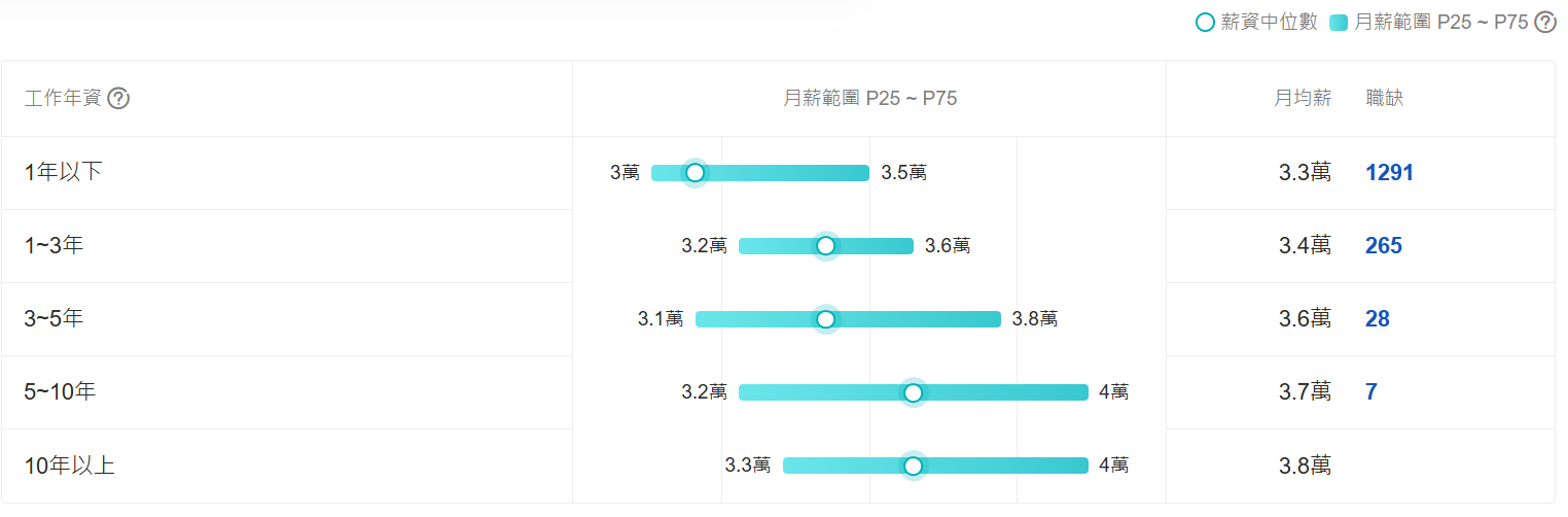 104人力銀行針對托育中心幼托員職缺之薪資統計。翻攝104薪資情報網