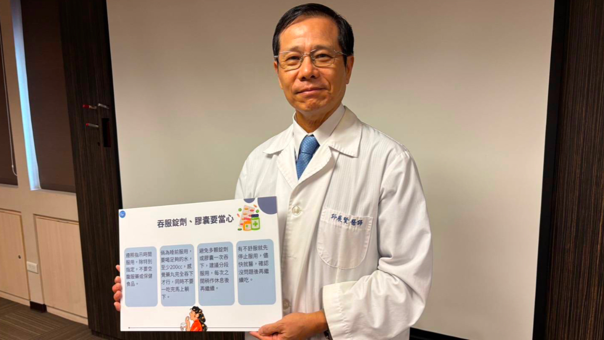「吞服錠劑、膠囊要當心!」邱展賢指出,在服用錠劑或膠囊狀的藥物或保健食品時要注意下列幾點,包括:1、遵照指示時間服用,除特別指定要空腹或飯前,不要空腹服藥或保健食品。2、倘為睡前服用,要喝足夠的水,至少200cc,感覺完全吞下才行,同時不要一吃完馬上躺下,至少停10分鐘。3、避免多顆錠劑或膠囊一次吞下,建議分段服用,每次之間稍作休息後再繼續。4、有不舒服就先停止服用,儘快就醫,確認沒問題後再繼續吃。