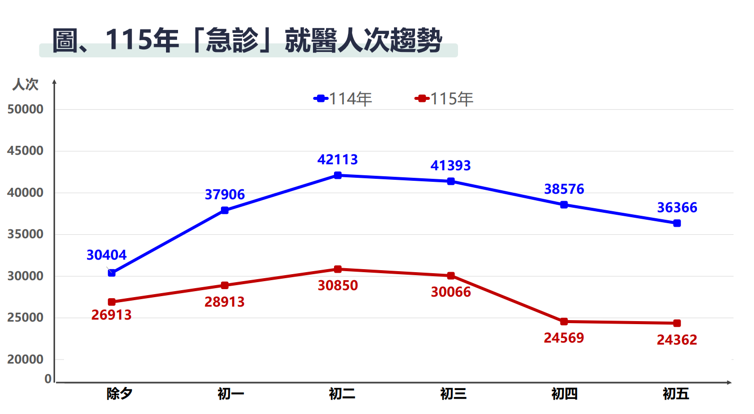 115年「急診」就醫人次趨勢。衛福部提供