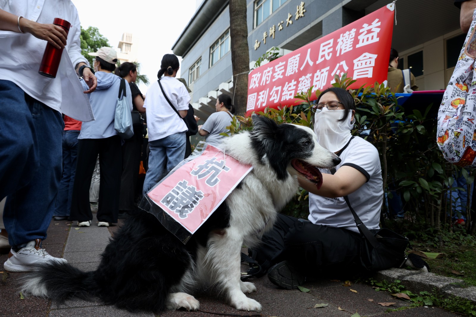 農業部防檢署召開研商「人用藥品用於犬貓及非經濟動物之使用管理辦法」修正草案會議,場外民眾帶來寵物前來陳情。廖瑞祥攝