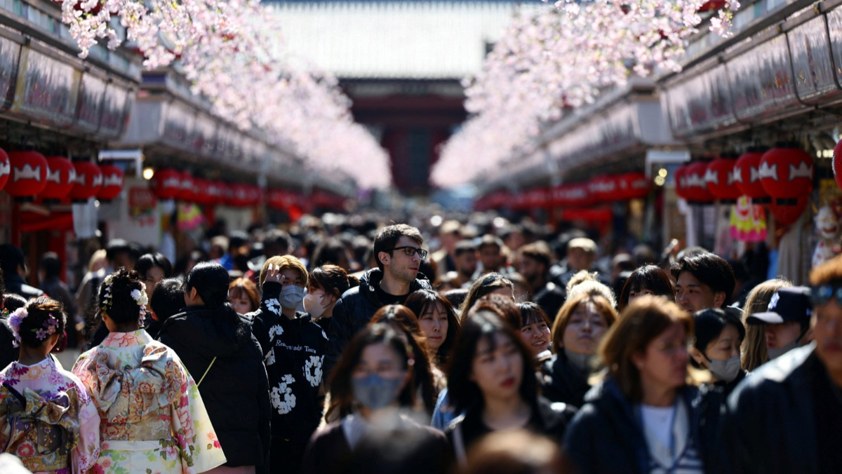 隨著不少中國旅客取消赴日旅遊,有網友發現部分當地飯店出現降價。圖為今年3月日本東京淺草寺前觀光人潮。路透社