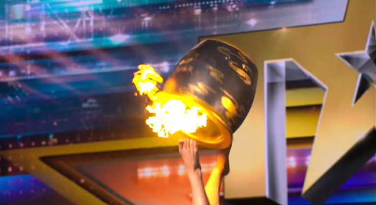 我來自台灣!楊立微倒立雙腿滾「燃燒火缸」 《達人秀》全場尖叫
