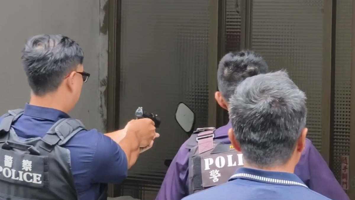 苗栗警分局分局長、偵查隊長率隊攻堅壓制逮捕邱男。讀者提供