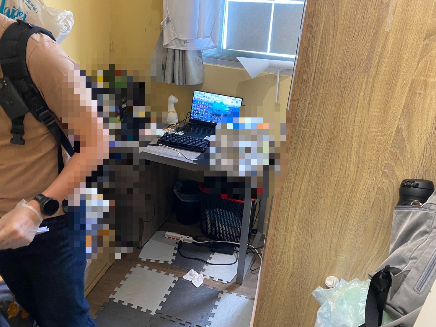 刑事局電信偵查大隊等刑警進入洪男的落腳處,空間狹小,連曬衣服的空間都沒有,衣服就直接吊掛在窗邊曝曬;窗邊的書桌上放著筆電,是他作案的工具,一旁則擺著一張單人床。洪男長相斯文,看起來就是會讀書的樣子,很難想像他男扮女騙直男裸聊,甚至賣性影片賺暴利。