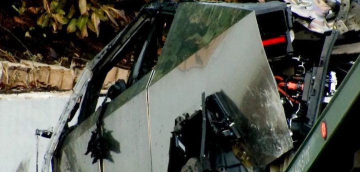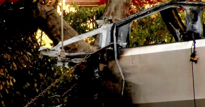 被稱為「未來之車」的特斯拉Cybertruck,2024年11月27日撞擊路樹後起火,車上四人有三人被燒死。取自X