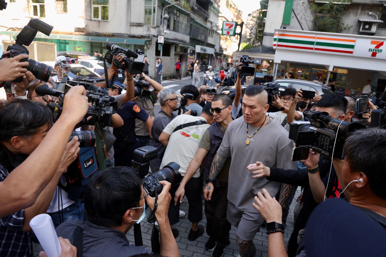 網紅「館長」陳之漢因「斬首賴清德」言論,赴刑事局報到說明。李政龍攝