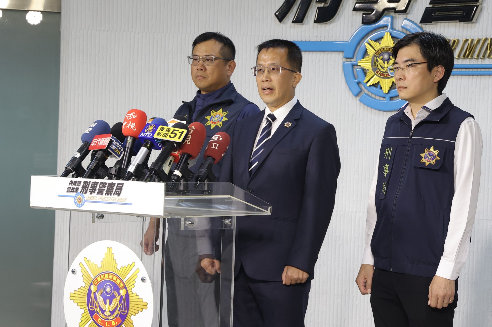 刑事局副局長陳世煌(中)說明館長恐嚇案。李政龍攝