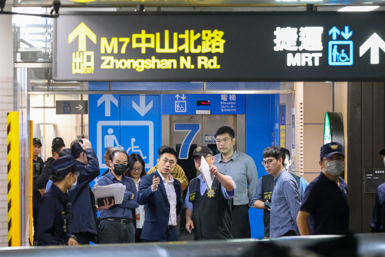 張文隨機殺人案,承辦主任檢察官曾揚嶺(穿西裝外套者)到台北車站案發現場勘驗,聽取警方說明。廖瑞祥攝