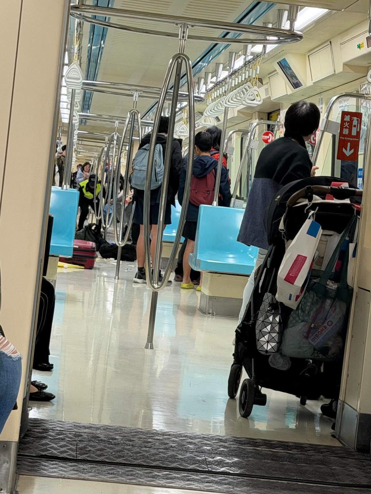 從其拍攝的畫面可見,乘客留下手機、飲料、背包、行李箱,甚至還有鞋子,足見當時驚慌。另名後續上車的網友,則拍到站務人員收拾的畫面,表示不知道發生什麼事,但「車頭車廂滿地咖啡、掉手機、傘骨斷」,讓人完全呆立不敢坐下。