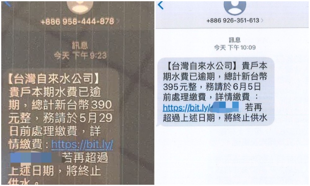 嫌犯用水費、電信費等假冒簡訊,誘騙受害人前往刷卡。讀者提供