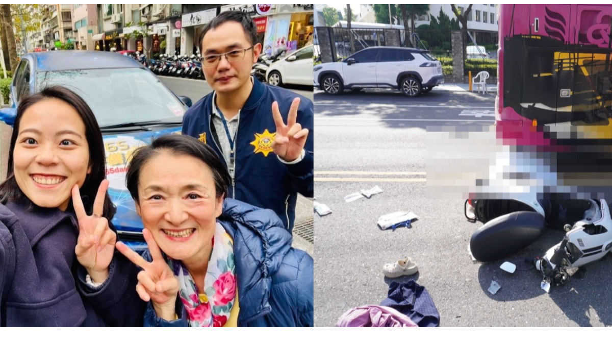 女警被撞飛後,肇事的女大生卻完全未上前關心,只顧著查看自己機車車損。取自譚艾珍臉書、讀者提供