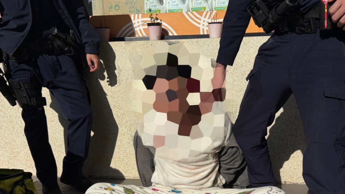 犯嫌呂男(32歲)在12/20持雙刀闖入加油站,大喊「我要維護世界和平」。遭三峽警方逮捕。讀者提供