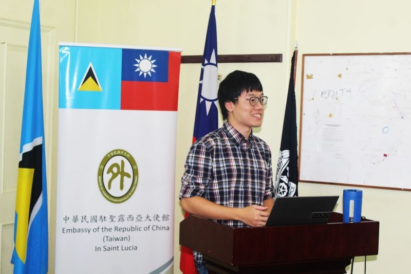林睿庠曾到我國駐聖露西亞大使館向當地警方授課。資料照。財團法人國際合作發展基金會提供