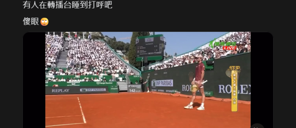 主播,累了!華視主播王韻筑在廣告時間打哈欠模樣大放送,為此發出道歉聲明,無獨有偶,觀眾發現博斯網球台轉播蒙地卡羅大師賽,傳來陣陣沉重打呼聲,球迷質疑主播是否「播到睡著了」。對此,該場比賽的主播張致平在社群中承認並致歉。