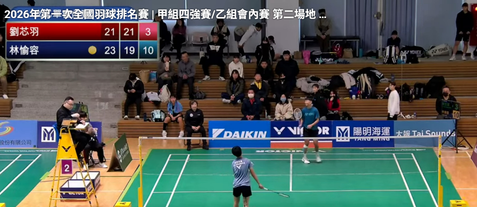 台灣女子羽球在球后戴資穎宣布退役後,同樣出身高雄的「戴資穎學妹」,現年 12 歲的劉芯羽,今年成為各方關注焦點,部分媒體甚至以「小戴接班人」力捧新星,不過今天她在排名賽首秀,參加2026年第一次全國羽球排名賽,可惜64 強賽力拚 3 局,敗給對手無緣晉級。