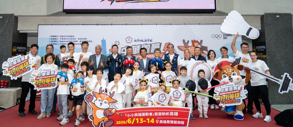 中華奧會今(10)日舉辦「2026中華奧會第4屆小小英雄運動會」報名起跑記者會,宣佈活動首度移師高雄,6月13、14日將於高雄展覽館展開為期兩天的活動,今年除了新增幼兒拔河項目,更規劃了歷屆最多的13項運動體驗,歡迎全台灣3~6歲幼兒報名挑戰,一起在賽場上揮灑汗水成為小小英雄!