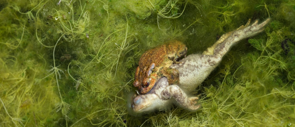 攝影獎「年度特寫攝影師」近日公布挑戰賽「死亡與腐朽」得獎名單,西班牙攝影師岡薩雷斯一張公蟾蜍擁抱死去母蟾蜍的《真愛》,纏綿又淒美獲得二獎;義大利攝影師比吉鏡頭下一隻捕魚蛛吞食小青蛙時,被吞噬一半的青蛙彷彿驚恐錯愕的表情,入圍挑戰賽決選名單。