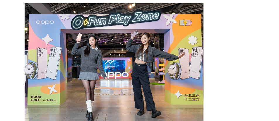瞄準科技控聚集的精華場域台北三創生活園區,OPPO於即日起至1月11日,於三創十二立方廣場打造「O Fun Play Zone 怎麼拍都型」潮玩科技所,以繽紛多巴胺色系,結合Y2K潮流元素,佔地百坪的沉浸體驗空間,除了全新Reno15 系列、智慧錶款Watch S,也同步展出廣受喜愛的Find X9旗艦系列,讓消費者一次上手輕鬆玩出百變風格。