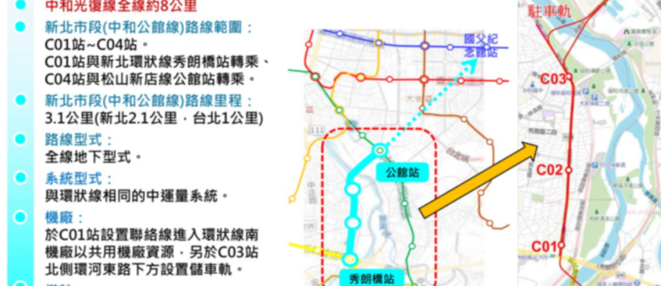 新北市長侯友宜今天(1/6)上午,前往新北環狀線秀朗橋站視察,談到「中和公館線」,他表示去年5月新北已啟動可行性研究,預計今年年中完成報告提報中央審議。他強調,這是他任內最後一年,有責任要把捷運中和到公館段送交通部審議。依照規劃,「中和公館線」從中和的秀朗橋站到公館站路線3.1公里、擬設4站,未來更可以直接通往國父紀念館站。