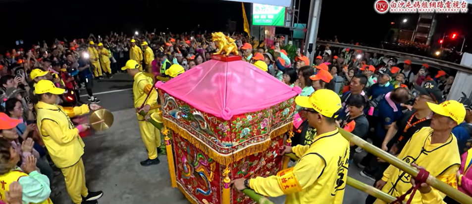 白沙屯媽祖、山邊媽祖與拱天值年爐主媽祖今年首度合轎,粉紅超跑13日上午台中市境內,進入抵達鎮瀾宮,出現歷史上首次的「四媽會」,大甲鎮瀾宮的董事長顏清標也親自接駕。