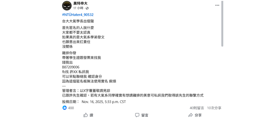 「賭颱風假」掀雞排珍奶之亂 台大發聲了:無法確認發文者身分