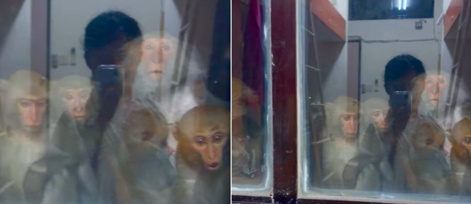 位在高雄市壽山的國立中山大學,由於校舍鄰近壽山,校園、宿舍常遭獼猴闖入,師生們也不堪其擾。日前一名中山大學女大生,上課後返回宿舍,打開房門後,竟然有12隻眼睛從窗外盯著房內看,仔細一瞧才發現6隻獼猴整齊地「排排站」,女大生發現窗外的不速之客應該是獼猴一家6口,正在享受天倫之樂,po上網後網友也驚呼連連。